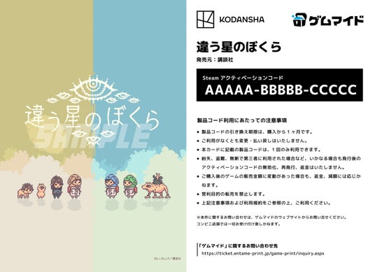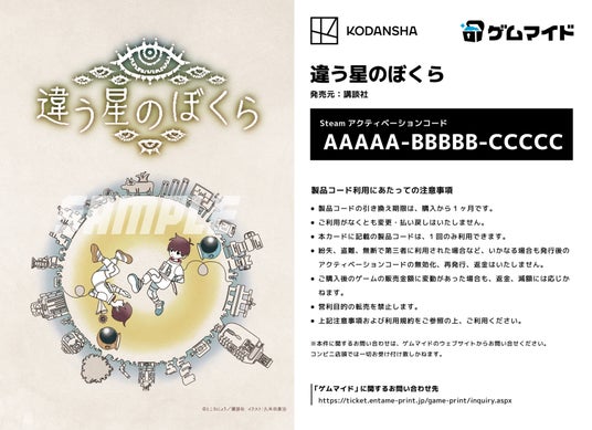 イード株式会社は、Steamキーコード販売サービス「ゲムマイド」にて、株式会社講談社のPCゲーム『違う冬のぼくら』と『違う星のぼくら』の販売を4月25日から開始した。各作品はブロマイド付きで、それぞれ2種類の絵柄が用意され、価格は710円(税込)。