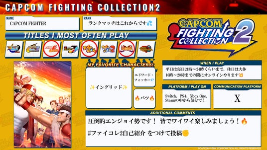 さらに『カプコン ファイティング コレクション1+2 パック』の同時展開、オリジナル自己紹介カードの配布、ウメハラとアールによる紹介動画やSNSキャンペーン、ユーザーアンケートといった施策を通じて、初心者から上級者まで幅広い層が楽しめる内容としつつ、本作の多面的な魅力を発信している。