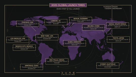 世界各地におけるローンチ時刻も正式に公開されました。デラックス版またはアルティメット版をご購入いただいた方は、6月5日(木) 23:00より先行プレイが可能です。そして、正式リリースは6月10日(火) 23:00になります。Steamで予約購入をしたすべてのプレイヤーは、先行プレイの24時間前から『Dune: Awakening』の事前ダウンロードが可能です。スパイスが世界のプレイヤーを魅了する日がついに訪れます。