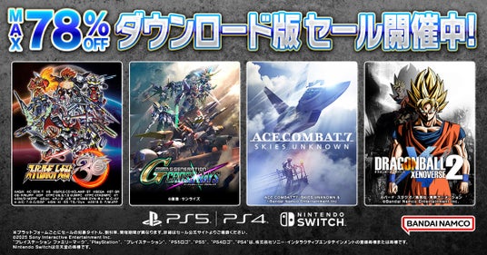 『ドラゴンボール ゼノバース2アルティメットエディション』や『スーパーロボット大戦30 デジタルアルティメットエディション』などの人気タイトルが対象となり、最大62%の割引が適用される商品も含まれている。また、Nintendo Switch向けにも同日よりセールが開始され、対象タイトルには『SDガンダム ジージェネレーション ジェネシス for Nintendo Switch』や『スーパーロボット大戦T』などがあり、50%以上の割引が提供されている。
