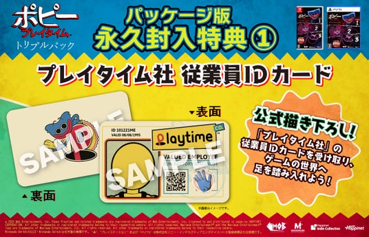 また、永久封入特典として「プレイタイム社 従業員IDカード」が付属。パッケージデザインはNintendo SwitchとPlayStation 5で異なるイラストで描かれた、ユニークなリバーシブルジャケット仕様となっています。