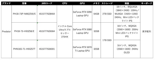 PH18-73P-N962Z59/E(18インチ Core Ultra 9, GeForce RTX 5090)