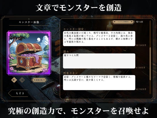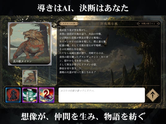 ユーザーはアプリのダウンロードやインストール不要で即時プレイが可能。音声入力との連携により、直感的で没入感のあるインタラクションを実現。プロンプトを駆使してモンスターを指揮し、AIと即興的に会話しながら物語が分岐する独自のターン制バトルを展開する本作は、場所や時間を選ばず楽しめる新感覚の戦略ゲームである。
