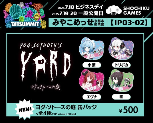 このたび、2025 年 7月18 日(金)~20 日(日) 京都市勧業館みやこめっせにて開催される「BitSummit the 13th」に本作も出展することをお知らせいたします。松竹ブースでは日本語実装されたデモ版を特別に先行試遊体験ができます。そして、日本初の公式グッズ販売やオリジナルノベルティカードも配布予定で、存分に『ヨグ=ソトースの庭』の魅力を発信しますのでぜひお立ち寄りください!