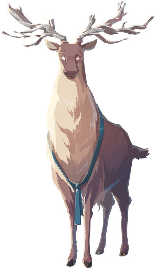 旅の途中で出会う大きなシカの神霊。