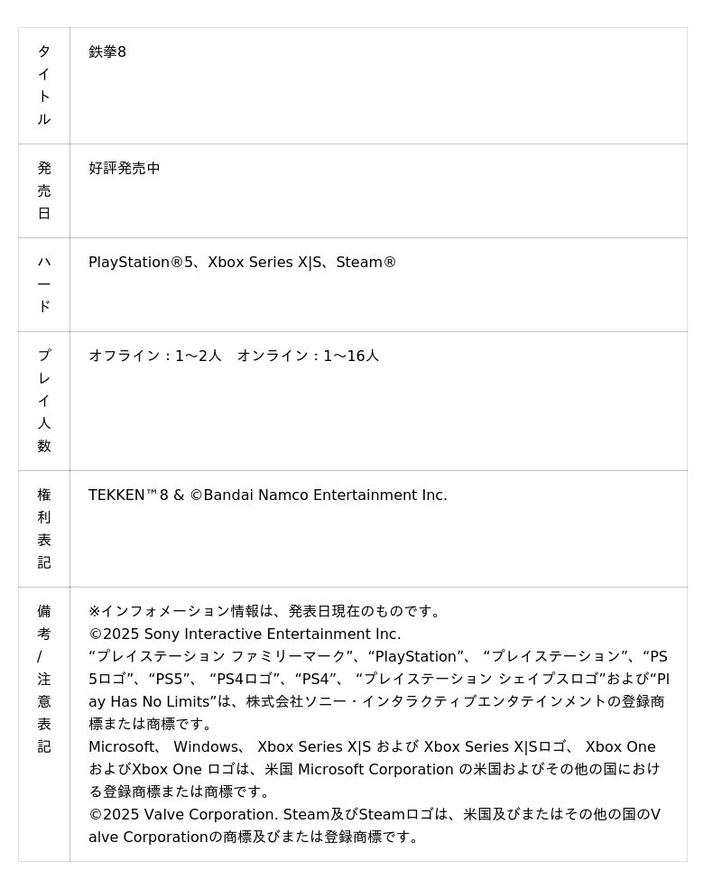 5,900万本以上の世界累計販売本数を誇る3D対戦格闘ゲーム「鉄拳」シリーズの最新作。