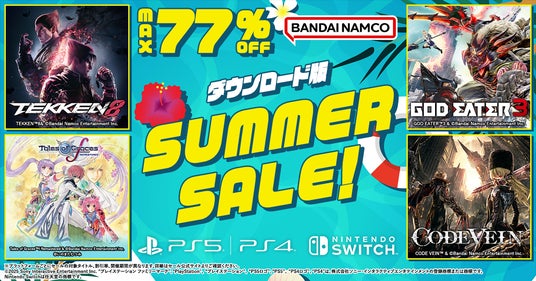 PlayStation・Switch対応!人気タイトル最大77%OFF!バンダイナムコ「Summer Sale」開催中