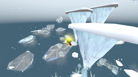 本作では、羽ばたき・滑空・ジャストジャンプといったアクションを組み合わせることで、爽快感あふれる操作体験が楽しめます。操作はシンプルながらも、タイミングや使い方次第で動きが大きく変化し、自分の思いどおりにキャラクターを操る気持ちよさが味わえます。羽ばたき:ふわっと浮上! ギリギリの足場にも届く。
