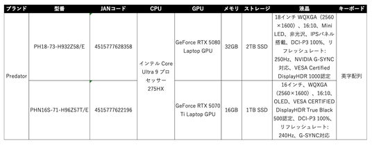 日本エイサー株式会社(本社:東京都新宿区、代表取締役社長:ボブ・セン)は、コアなゲーマーに向けた最上位ゲーミングブランドPredator (プレデター) より、2025 年モデルのゲーミングノートPC Predator Helios 18 AI 「PH18-73-H932Z58/E」およびPredator Helios Neo 16S AI 「PHN16S-71-H96Z57T/E」の2機種について、7月25日より、ヨドバシカメラ、ビックカメラグループ、他量販店ECサイトより順次発売いたします。