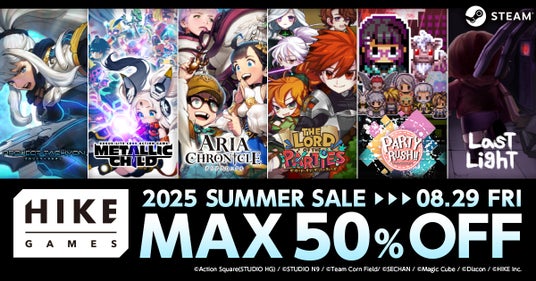 株式会社HIKEのゲームブランド「HIKE GAMES」は、2025年8月15日から29日までの15日間限定で、Steamにて発売中の6タイトルを対象に最大50%OFFのサマーセールを実施する。対象タイトルは『PROJECT TACHYON』、『ARIA CHRONICLE』、『METALLIC CHILD』、『Last Light』、『PARTY RUSH!!』、『The Lord of the Parties』。それぞれ独自のゲームシステムと世界観を持つ。