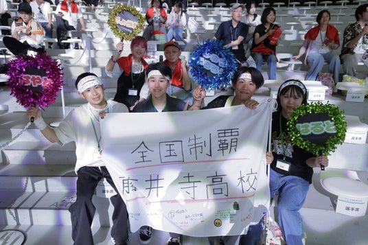 今回から新たに競技タイトルに採用された「ブロスタ部門」の初代王者に輝いたのは、大阪府立藤井寺高等学校「サウザンドラブ」。応援席から絶え間なく響いた同級生たちの声援を力に見事優勝を果たし、インタビューでは「最高の青春になりました!」と喜びを語りました。
