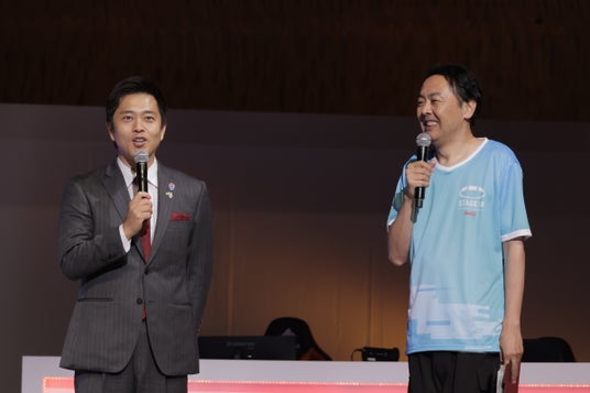 大阪府知事・吉村洋文氏がスペシャルゲストとしてサプライズ登壇。「eスポーツの大会を大阪・関西万博で開催してもらえるのは非常に嬉しいです。大阪府としても“eスポーツと言えば大阪”と言われるよう、発展に力を入れています。関西空港の向かいにeスポーツアリーナが建設されたり、難波にeスポーツを楽しめる施設が整備されたりもしておりますが、今後もさらにeスポーツを拡大していけたらと思っています」と、大阪府が取り組むeスポーツ推進施策について語っていただきました。