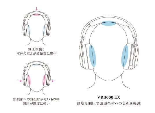 頭頂部への負担を軽減する快適な装着(イメージ図)