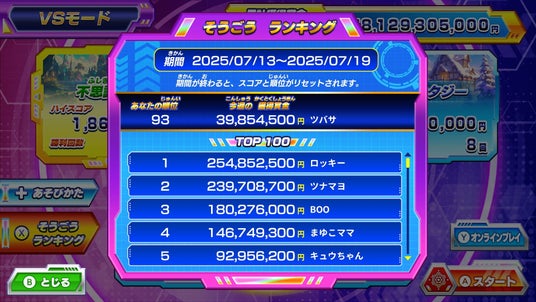 「ハンターVS逃走者モード」では、オフラインとオンラインで獲得した賞金の累計で順位を決定。