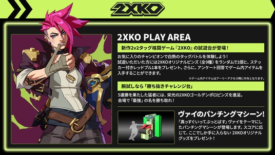 合同会社ライアットゲームズは、2025年9月25日から28日まで幕張メッセで開催される「東京ゲームショウ2025」に初出展する。ブース内では、新作2v2タッグ格闘ゲーム『2XKO』の試遊やピンズ配布、「勝ち抜きチャレンジ台」などの企画を展開する。『VALORANT』は「ナイトマーケット in TGS 2025」や「サンセット」のAサイトを再現したフォトスポットを設置し、『リーグ・オブ・レジェンド』は「ユナラの精神修養チャレンジ」を体験できる。『チームファイトタクティクス』では、ドラフトラウンドをテーマにしたフォトブースを用意する。