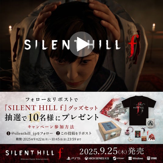 プレーヤーは、霧に包まれ異形へと変貌していく町・戎ヶ丘に暮らす高校生・深水雛子として、恐怖と幻想が交錯する世界で数々の謎と選択に直面しながら、生き残りを懸けた探索と戦いを繰り広げる。現在、雛子の運命を垣間見ることができるローンチトレーラーが公開されているほか、実況動画投稿を可能にするガイドラインも公式サイトにて公開中。また、発売を記念して公式Xでは、『SILENT HILL f』のグッズセットが当たるSNSキャンペーンが10月5日まで開催される。
