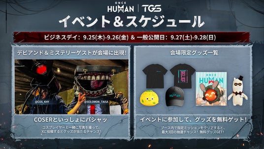 9月25日から28日まで開催される東京ゲームショウ2025において、『Once Human』の世界を間近に体験することができます。『Once Human』は、ホール08-C03に出展します。
