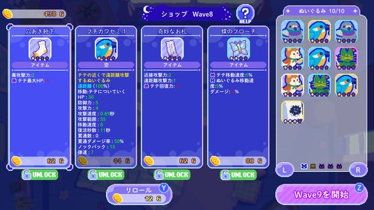 固定砲台型のぬいぐるみを多く仲間にしよう。