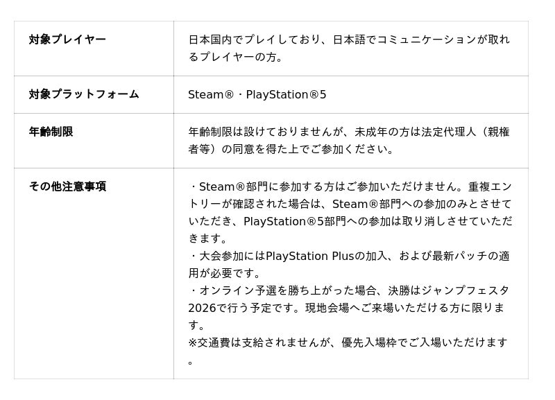 Steam®部門は11月1日(土)13:00からの開催、PlayStation®5部門は11月2日(日)13:00からの開催を予定しております。
