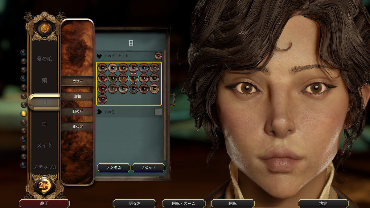ゲームを起動すると、キャラメイク機能が登場。顔や髪、目の色などを設定できるほか、自分の親や祖父母などの設定もある。キャラの雰囲気も当時をイメージしたものになっている。