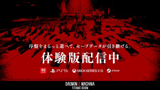 株式会社マーベラスは発売中のメカアクションゲーム『DAEMON X MACHINA TITANIC SCION(デモンエクスマキナタイタニックサイオン)』(Nintendo Switch™ 2/PlayStation®5/Xbox Series X|S/Steam®)にて、無料アップデート第2弾(Ver1.1.1)を10月17日配信しました。