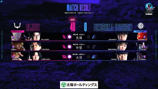 40-0で「REJECT」が勝利。理想的な形で後半戦を迎える。
