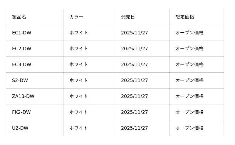 ベンキュージャパン株式会社は、ZOWIEブランドのワイヤレスゲーミングマウス「DWシリーズ」の新色ホワイトモデルを数量限定で2025年11月27日に発売する。対象は「EC1-DW」「EC2-DW」「EC3-DW」「S2-DW」「ZA13-DW」「FK2-DW」「U2-DW」の全7種類で、一部家電量販店およびPCショップのECサイトで販売される。直販やAmazon、楽天など自社ECでの販売はない。