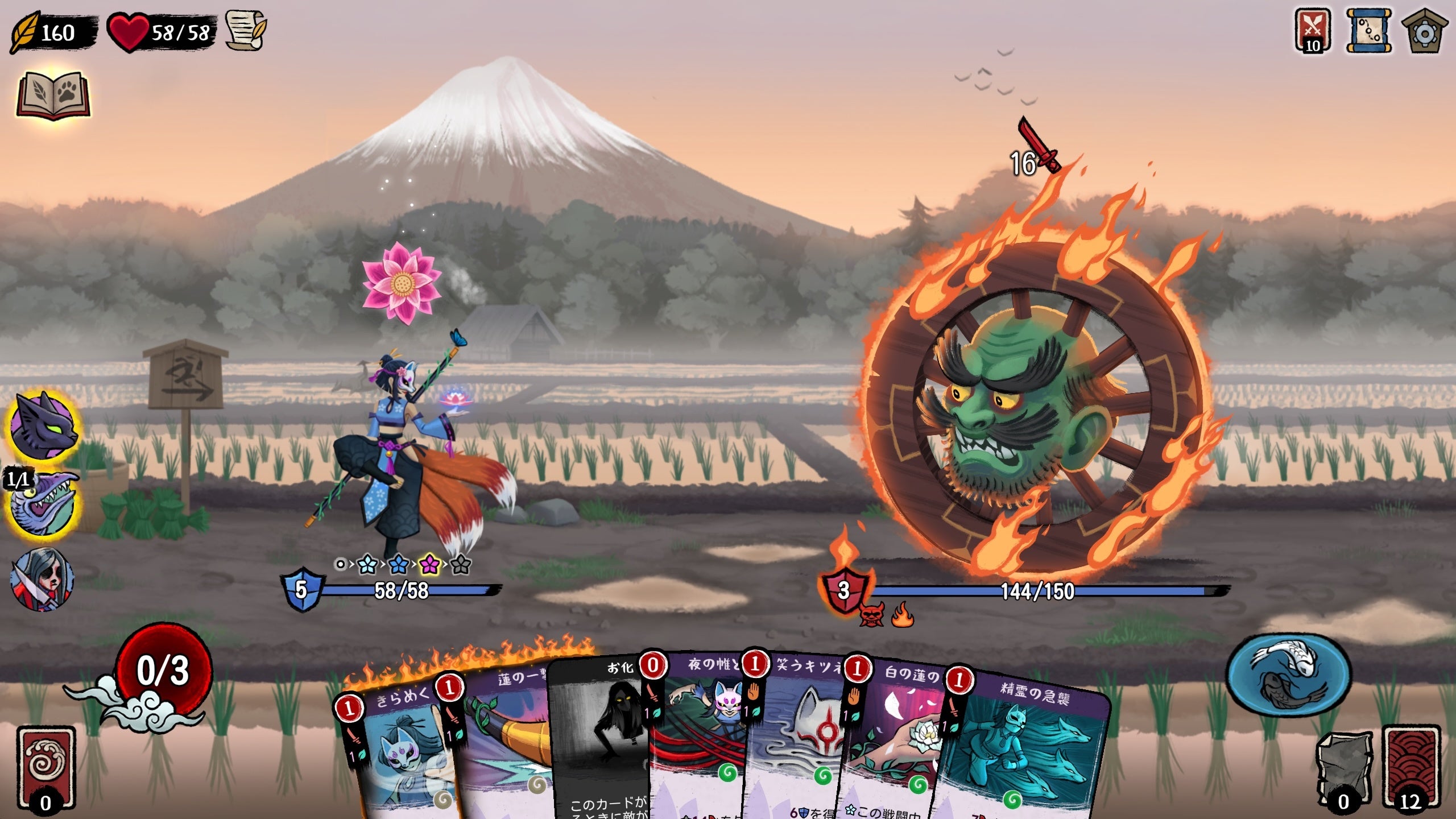 彼らの最初のプロジェクトである本作は、ずる賢い妖(あやかし)や忘れ去られた神々が登場する、日本神話をテーマにしたデッキ構築型ゲームです。