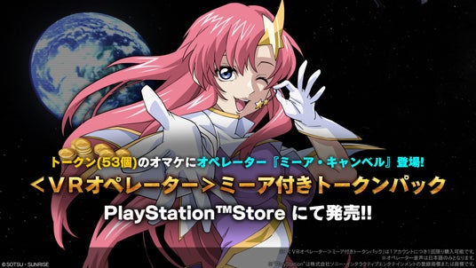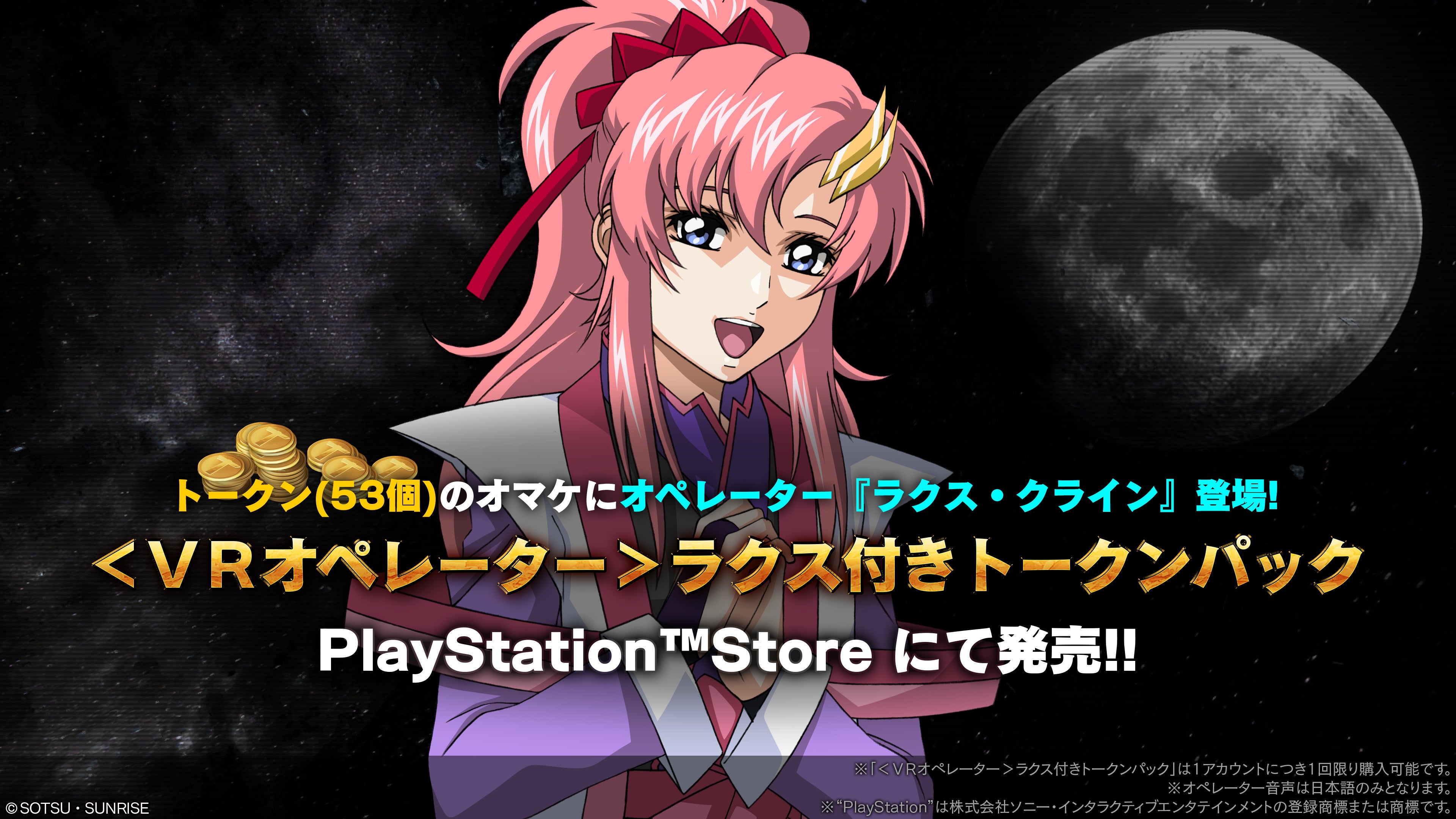 「デスティニーガンダム」の実装と同時に、「<VRオペレーター>ラクス付きトークンパック」および「<VRオペレーター>ミーア付きトークンパック」も発売。いずれもトークン53個に各種オペレーターが付属するセットだ。また、PlayStation版ではBLACK FRIDAYキャンペーンを展開し、ログインボーナスや1日1回の無料抽選配給、トークンセールなどを実施している。