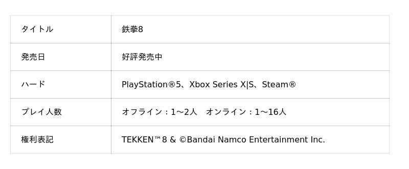 株式会社バンダイナムコエンターテインメントは、『鉄拳8』第8弾追加プレイアブルキャラクター
