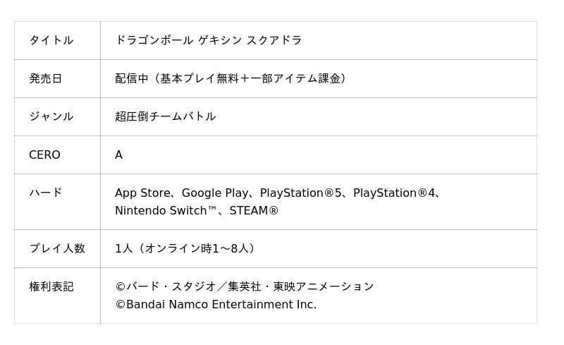 「ドラゴンボール Sparking! ZERO」「ドラゴンボール ゲキシン スクアドラ」