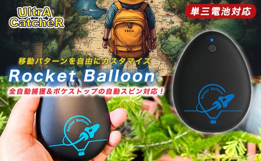Rocket Balloonは、オートキャッチ機能とオートスピン機能を搭載し、ポケモンの自動捕獲とポケストップの自動回収を実現。スマートウォーク機能により、単一ポイント移動、ポイント・ツー・ポイント移動、時速10kmでの自動円形移動など、移動パターンを自由にカスタマイズ可能だ。LEDランプで捕獲成功やアイテム獲得状況をリアルタイム表示。単三電池2本で駆動するため、充電不要で長時間のプレイが可能である。iOS専用のUltrA CatcheRアプリに対応し、初心者でも簡単に設定できる仕様となっている。