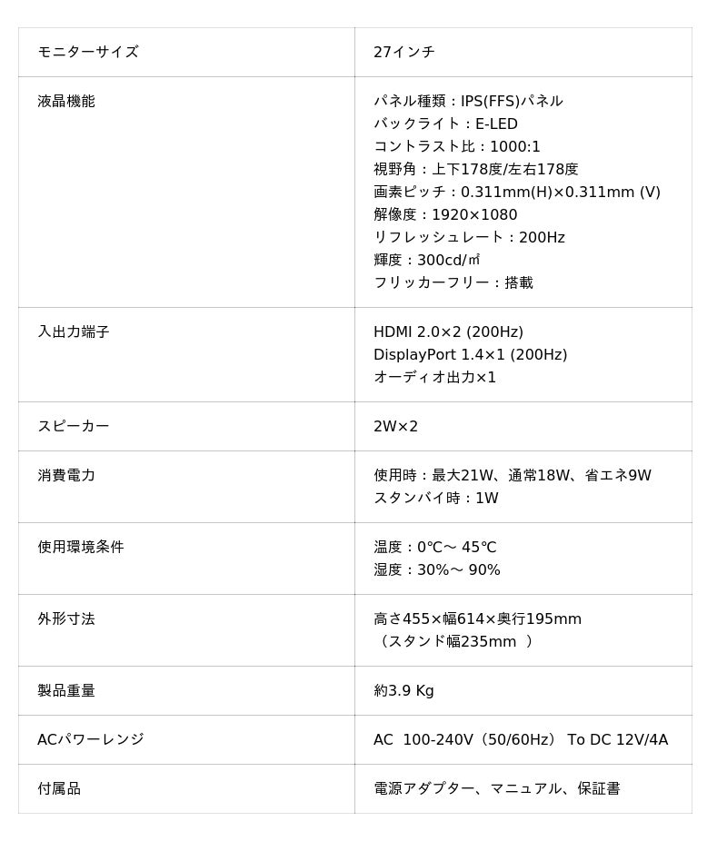 【製品特徴】- 27インチ IPSパネル搭載 200Hz対応 フルHDゲーミングモニター