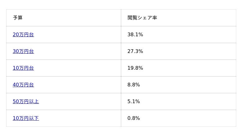 【価格帯別 閲覧シェア率】
