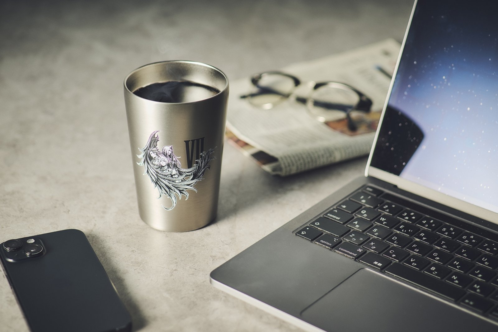 本体表面には野村哲也によるイラストを、背面にはメテオをはじめとする『FFVII』要素満載のエンブレムをあしらいました。機能的で快適な真空断熱構造タンブラーは、長時間のゲームのおともにもピッタリなアイテムです。