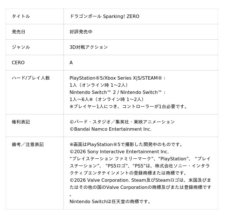 株式会社バンダイナムコエンターテインメントは、 PlayStation®5/Xbox Series X|S/STEAM®/Nintendo Switch™ 2 / Nintendo Switch™にて好評発売中の 「ドラゴンボール Sparking! ZERO」につきまして、大ボリュームのコンテンツを含んだ大型DLCを、2026年夏に発売することを、発表いたしました。