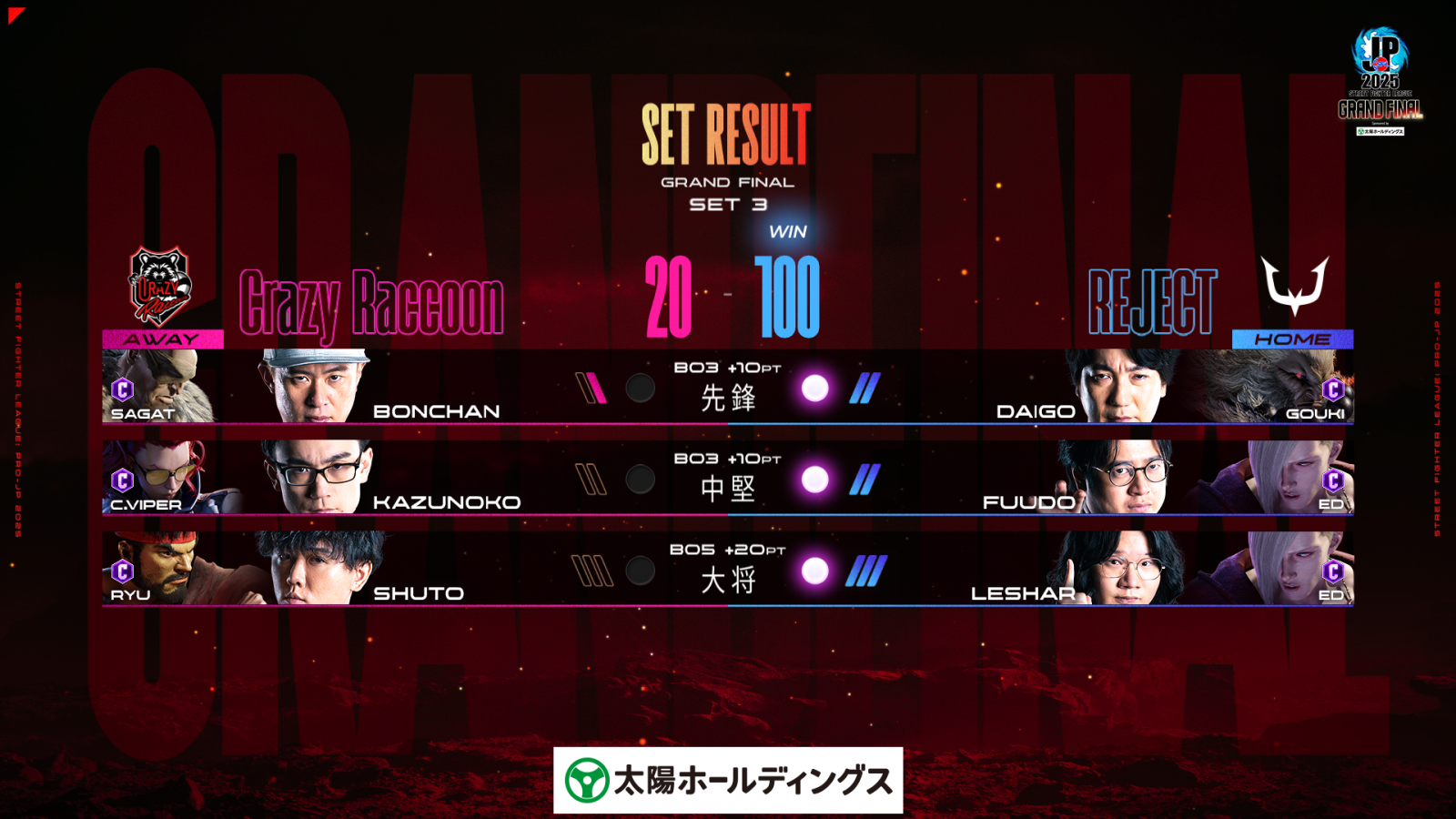激闘制しREJECTが頂点に「ストリートファイターリーグPro-JP 2025グランドファイナル」