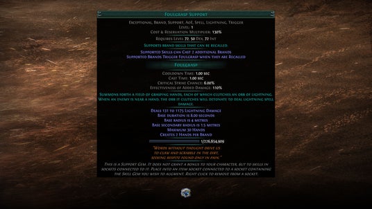 グラフトアイテムは削除されましたが、その力は、オファリングスキルを通じてブリーチミニオンを召喚するハイヴボーン(Hiveborn)サポートや、ブランドを呼び戻した(リコール)際にブリーチの手による拘束効果をトリガーするFoulgraspサポートなどの希少(Exceptional)サポートを通じて生き続けます。