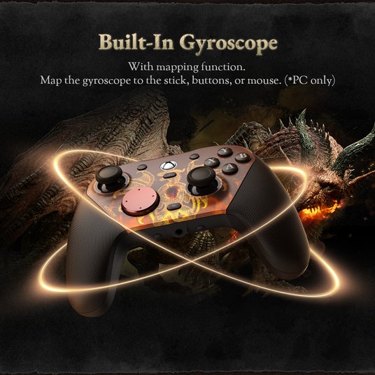 『ドラゴンズドグマ 2』のようなダイナミックな戦闘にも対応できる、本コントローラーには 4つのプログラム可能なマクロボタンを搭載。2つのミニバンパー(R5/L5)と、ロック機構付きの背面ボタン(R4/L4)により、戦況に応じた柔軟な操作が可能です。さらに、内蔵ジャイロスコープ(PCのみ対応)により、モーション操作で直感的にゲームをプレイする事も可能です。バトル中に快適な手応えを得られるよう、ABXY ボタンには 光学式マイクロスイッチを、方向キーには メカニカル式マイクロスイッチ 十字キーを採用。また、グリップ部とトリガー部それぞれに配置された 4つの独立した振動モーターが、各パーツで異なる振動によって、激しい衝突、呪文の発動、そして咆哮の一つひとつを、手のひらでリアルに感じ取ることができます。